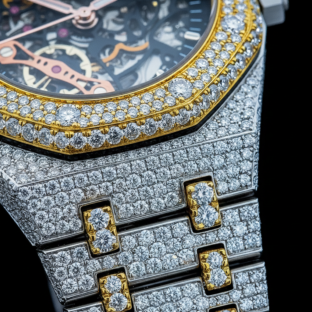 Fully pavé-set case and bracelet for elevated brilliance