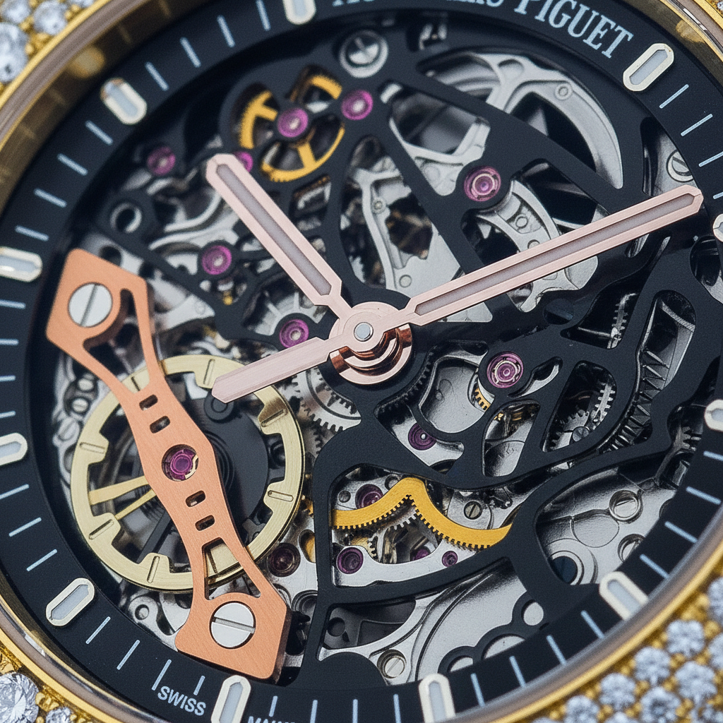 Skeleton-style dial revealing mechanical artistry beneath